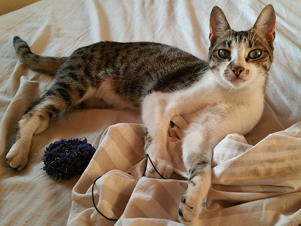 And then it is to try distract her with a scrunchy, all the better for my hand and a whole lot more fun.